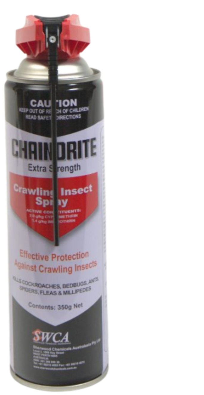 Treating surfaces with Chaindrite Extra Strength Crawling Insect Spray will kill and protect against a large range of crawling insects. Commonly used for a direct kill spray in the direction of the crawling insect, aimed at controlling :